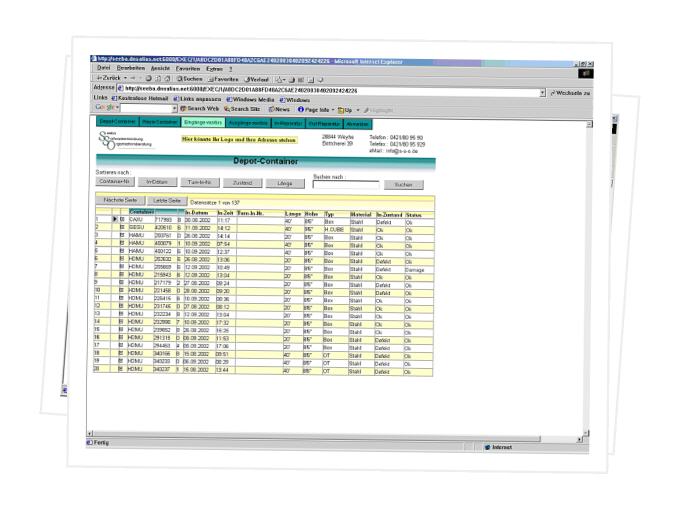 COSI Web informiert Ihre Kunden auf Ihrer Internetseite aktuell über den Container-Bestand, Reparatur-Bestand, Ein- und Ausgänge von Containern sowie Reparatur-Authorisationen und -Fertigmeldungen.